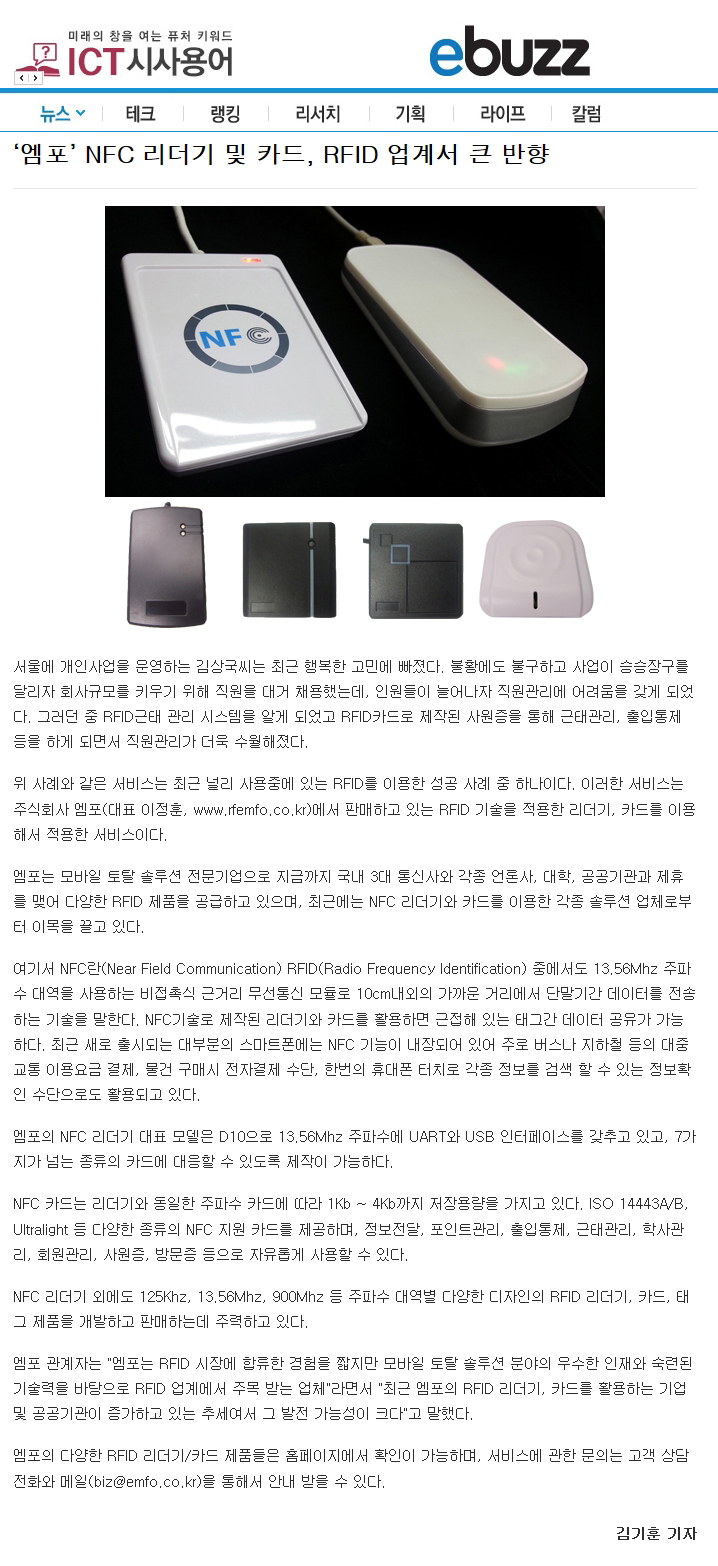 엠포' NFC 리더기 및 카드, RFID 업계서 큰 반향